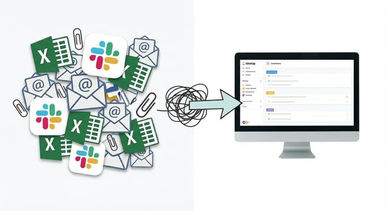 La mayoría de equipos pierden el 40% de su tiempo buscando información entre correos, hojas de cálculo, canales de chat y herramientas de gestión desconectadas. ClickUp elimina ese "ruido" operativo.