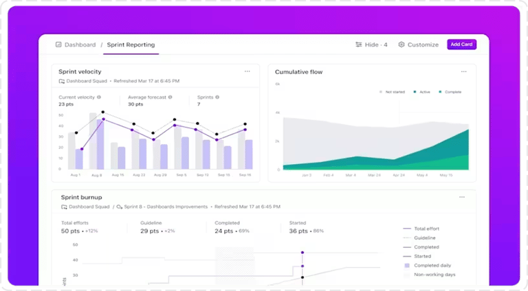 Gestiona el ciclo de vida completo del producto. Desde el Roadmap hasta el lanzamiento, manteniendo a desarrolladores, Product Owners y líderes sincronizados.